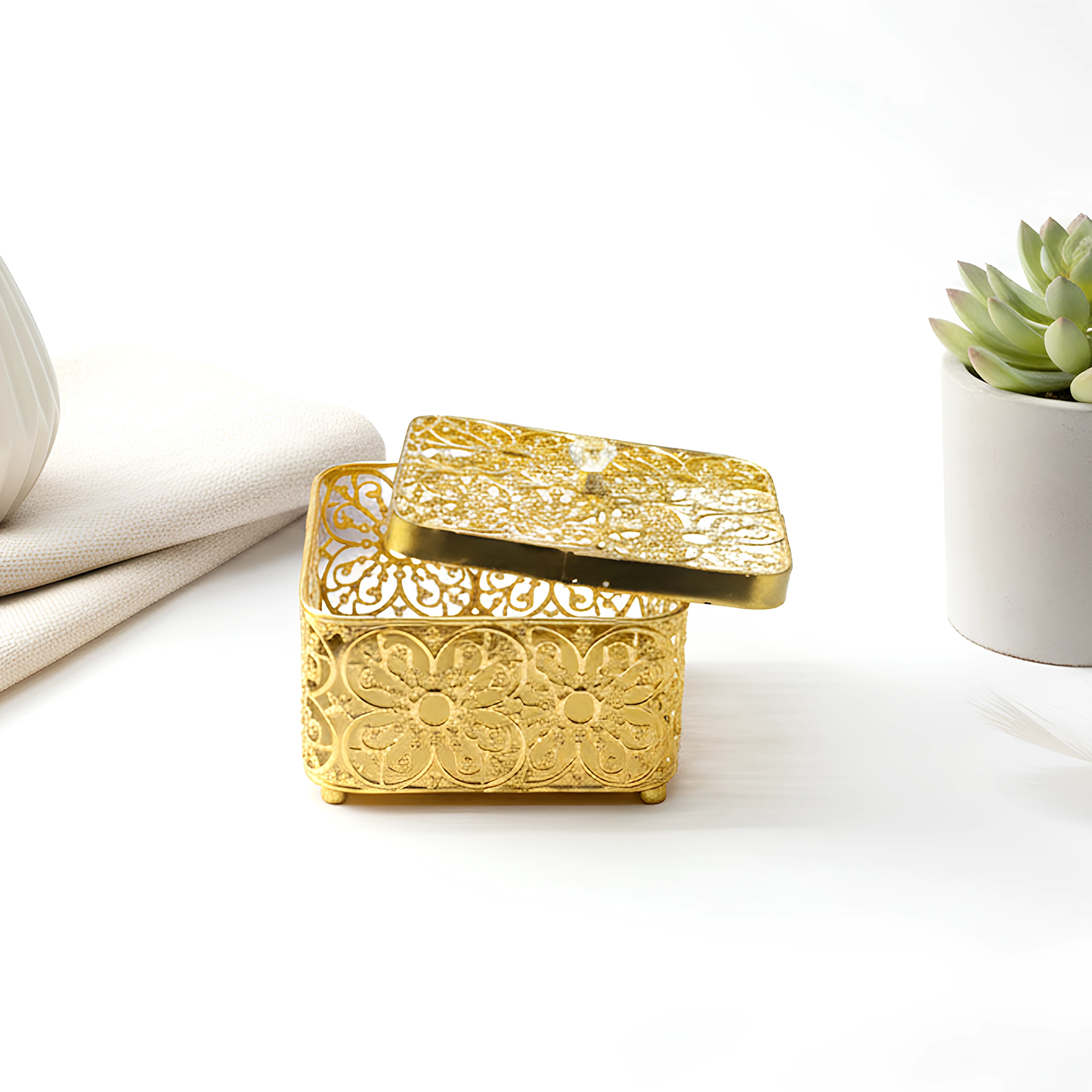 - Perfect Size: With 5.75” x 5.75” x 4.0” dimensions but still spacious enough for sweets, dry fruits, chocolates or even jewelry.
